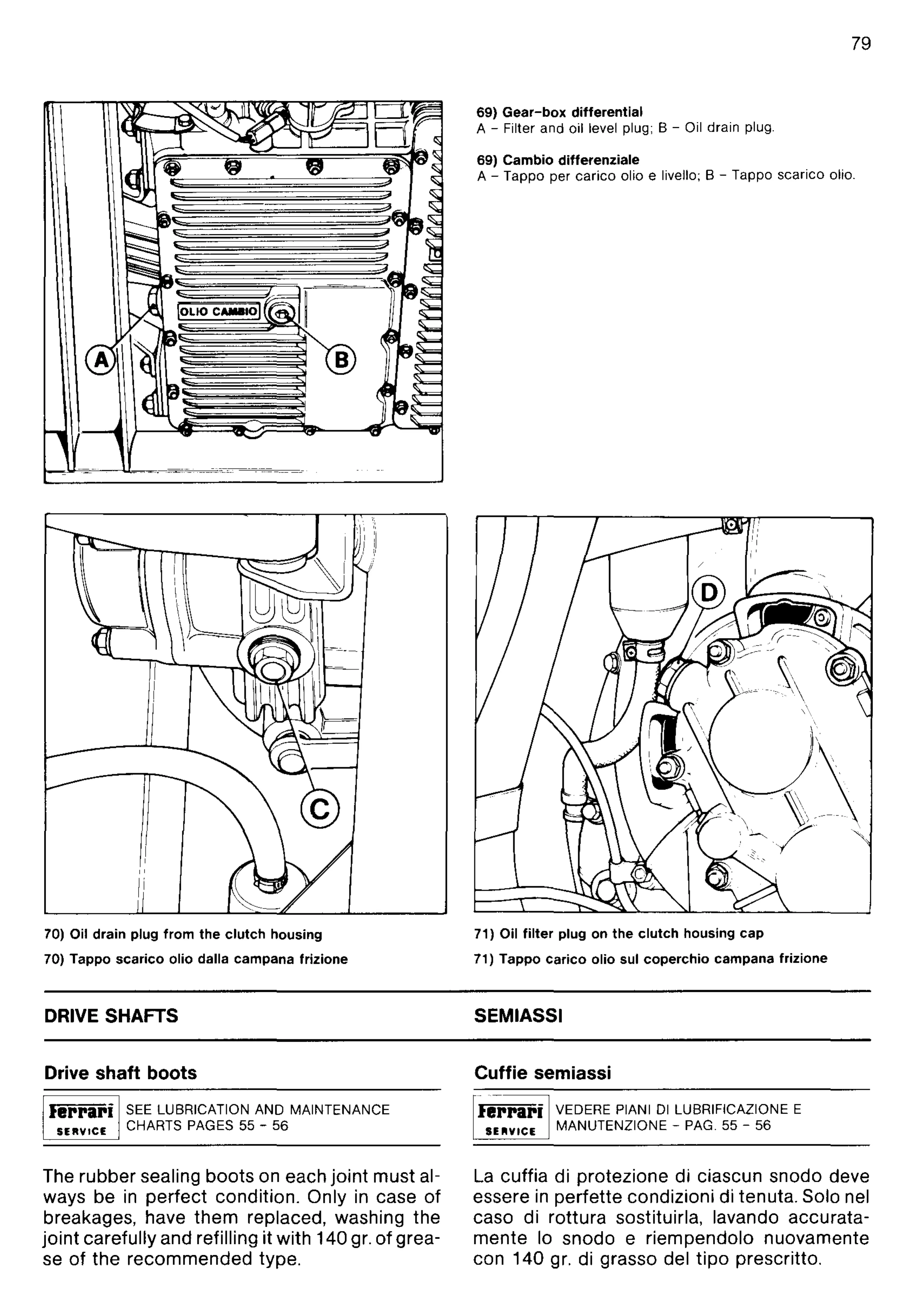 olio e livello; B - Tappa scarico olio.
