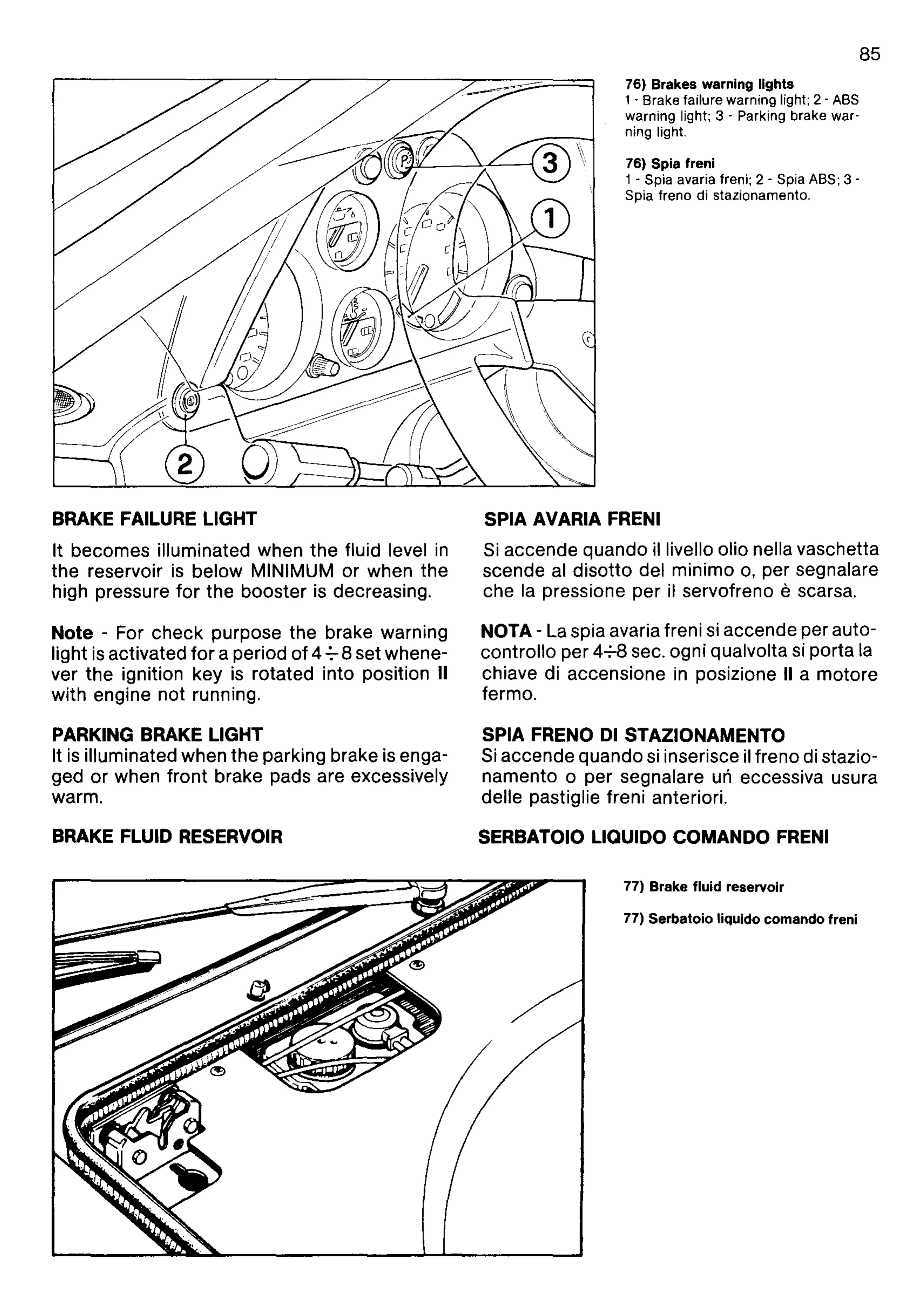- Spia avaria freni; 2 - Spia ABS;