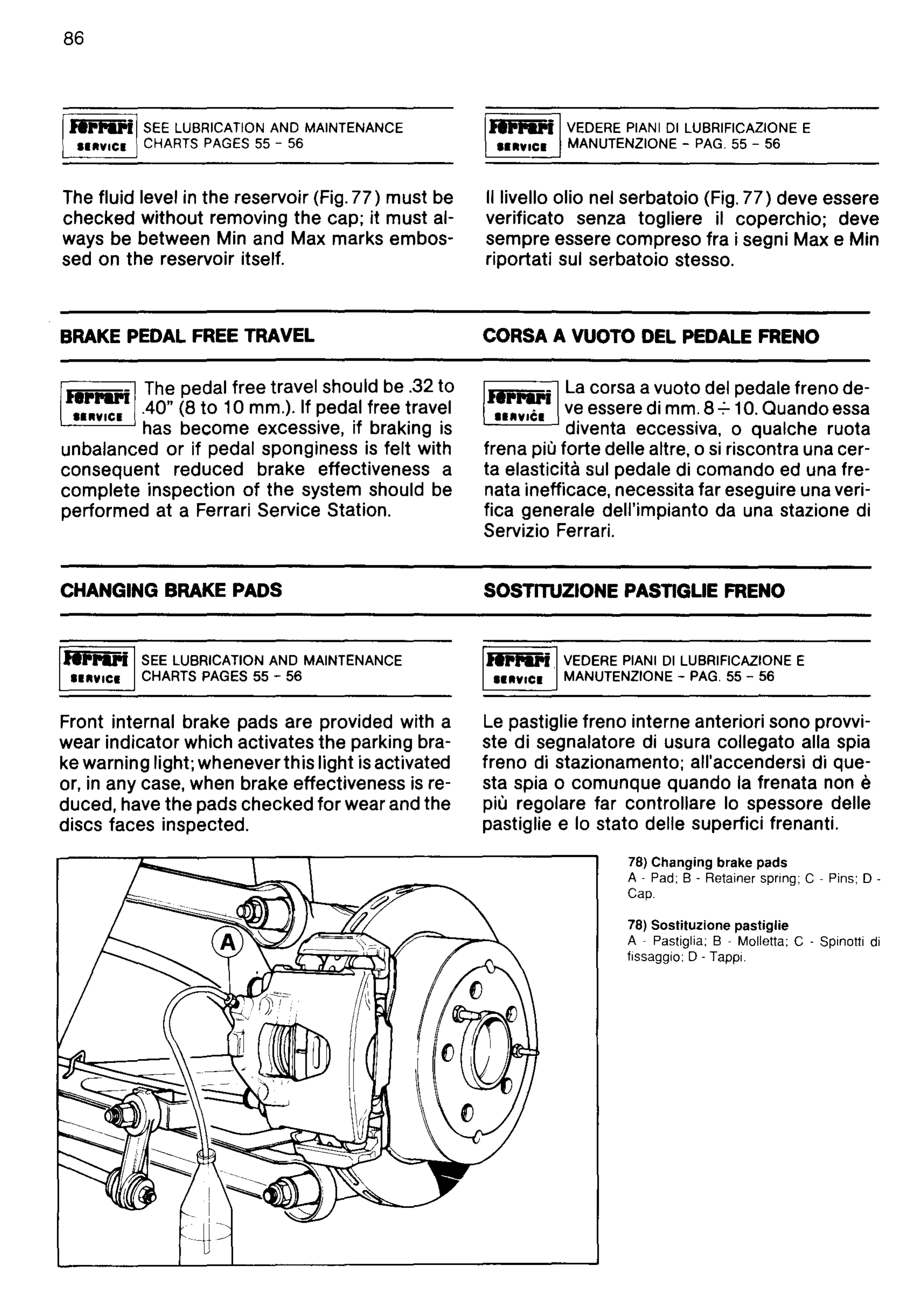 Pad; B . Retainer sprrng; C . Pins; 0 .