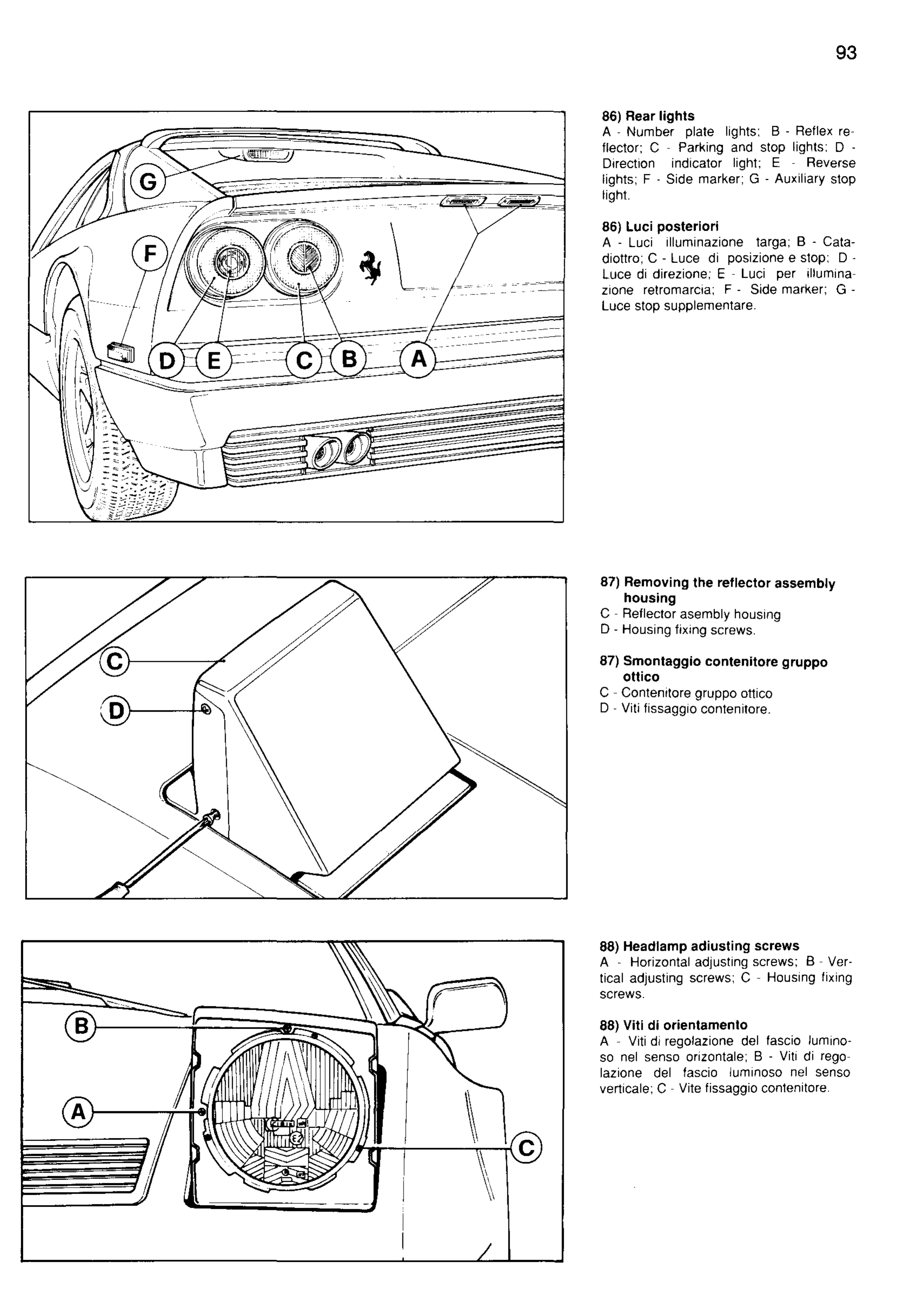 zione retromarcia; F - Side marker;