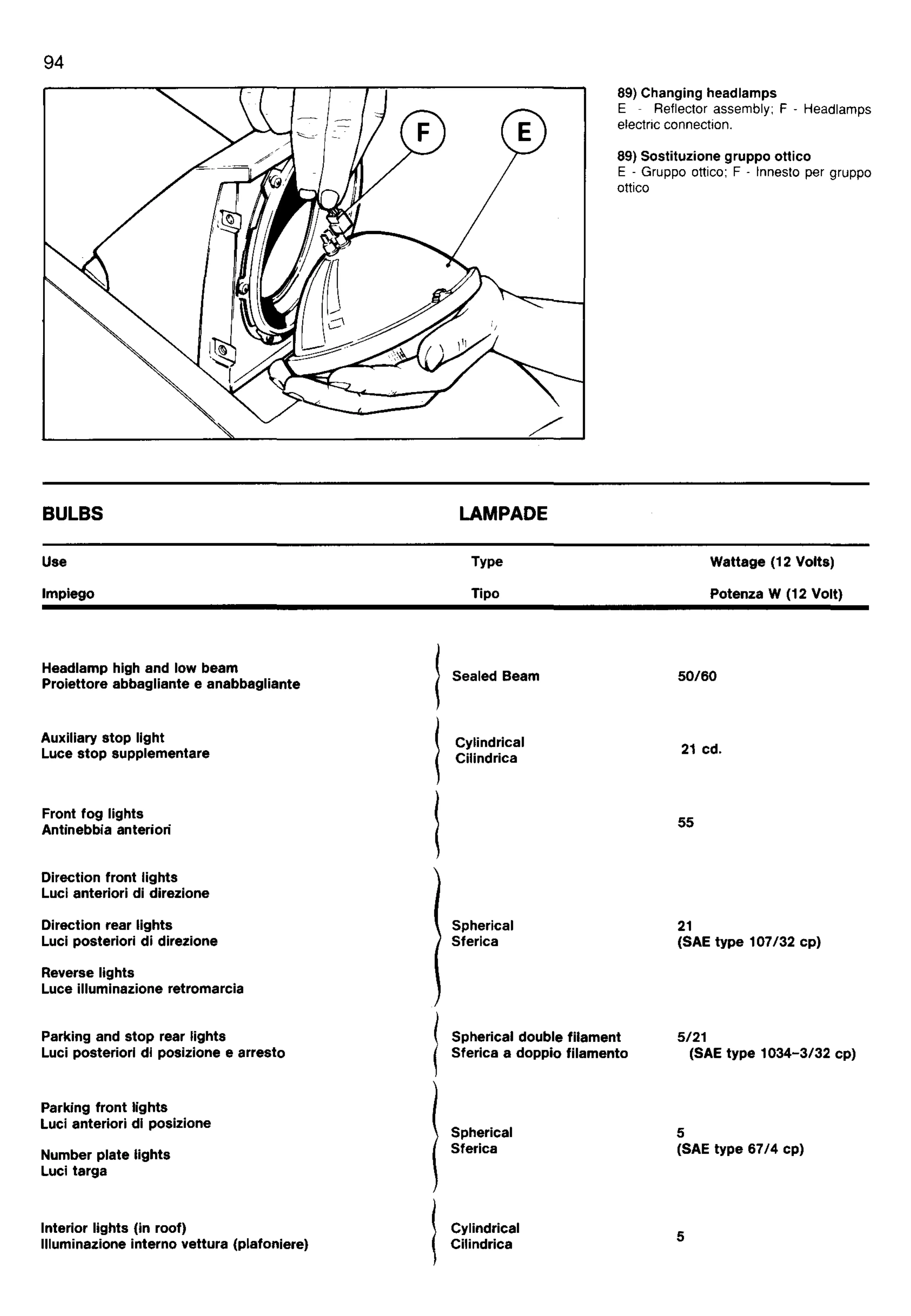 E - Reflector assembly; F - Headlamps