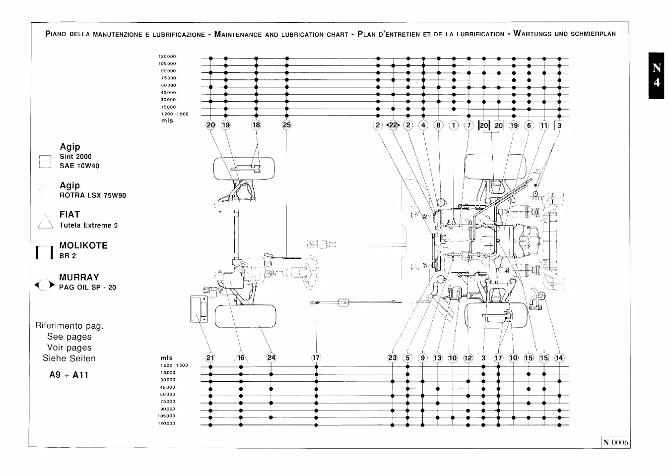 Ferrari 348 spider - piano della manutenzione e lubrificazione; maintenance schedule and lubrication; plan d’entretien et de lubrification; wartungs- und schmierplan