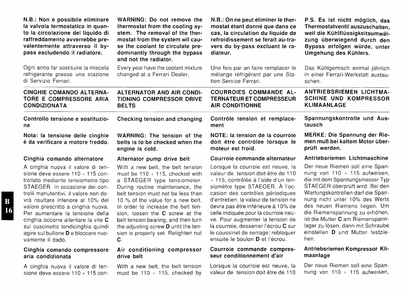 Ferrari 348 spider - cinghie comando alternatore e compressore AC; alternator and air conditioning compressor drive belts; courroie commande alternateur et compresseur AC; antriebsriemen lichtmaschine und kompressor klimaanlage