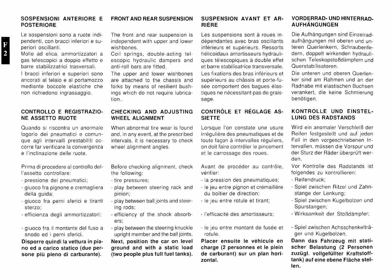 Ferrari 348 spider - generalità; controllo e registrazione assetto ruote; general; checking and adjusting wheel alignment
