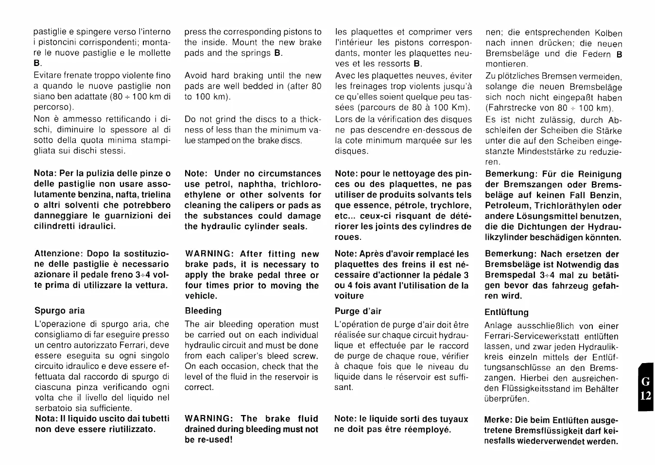 Ferrari 348 spider - spurgo aria; bleeding air; purge dair; entluftung