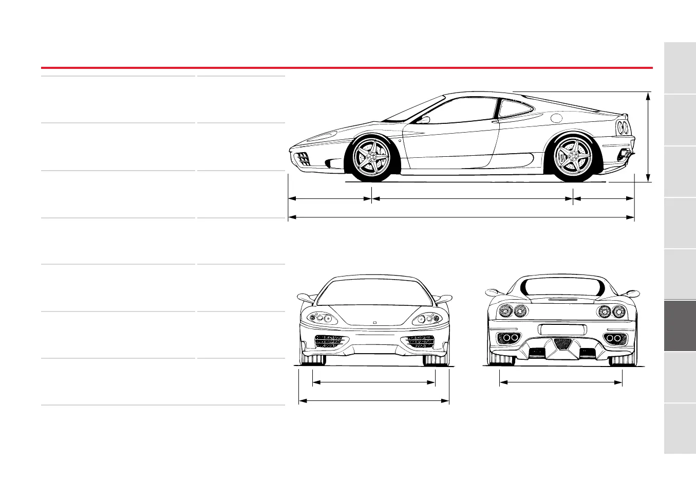 Ferrari 360 Modene 2002 - Dimensions and Weights