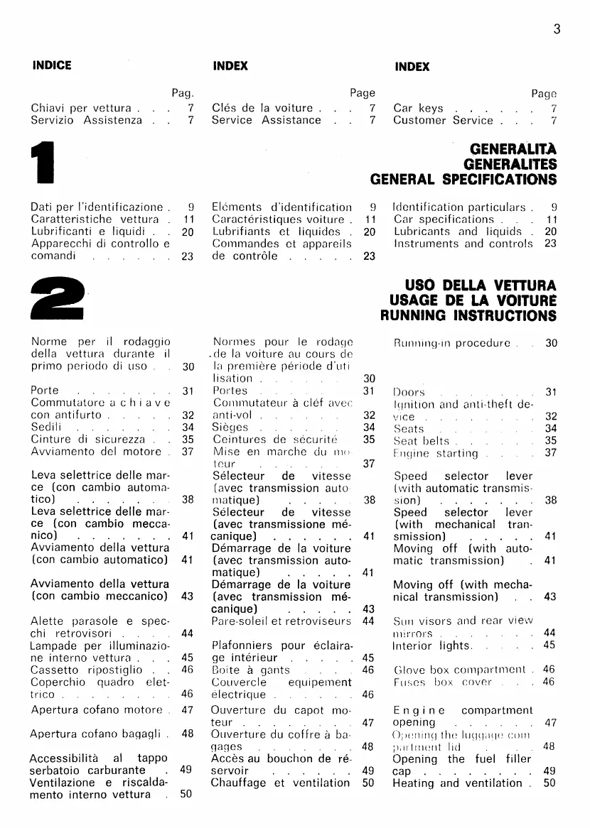 Ferrari 400i - INDICE; INDEX