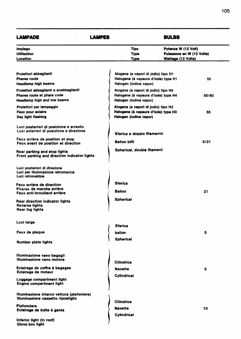 Ferrari 412 - Bulbs