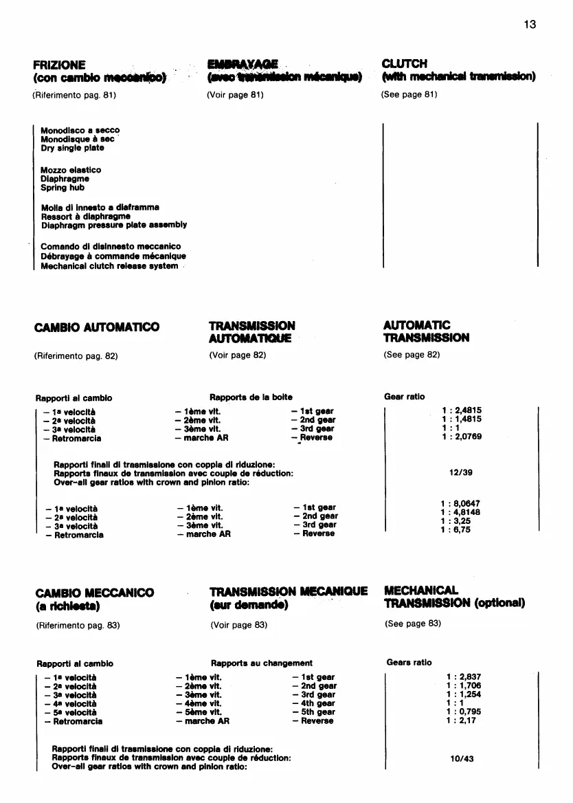 Ferrari 412 - Clutch; Automatic Transmission; Mechanicam Transmission