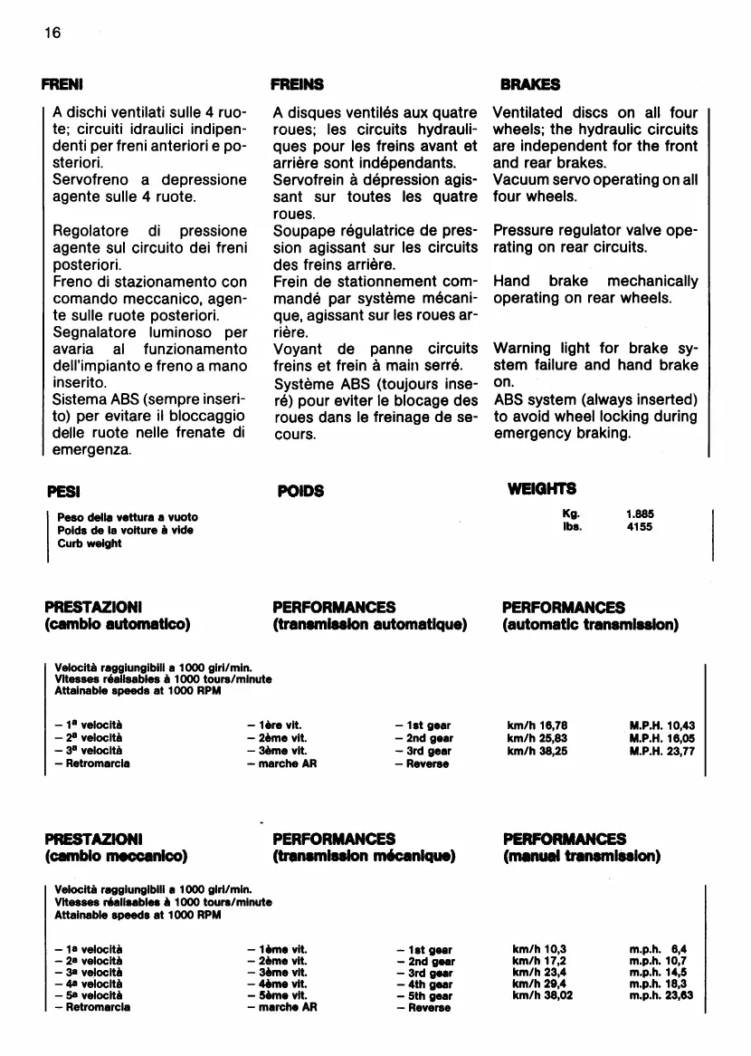 Ferrari 412 - Brakes; Weights; Performances