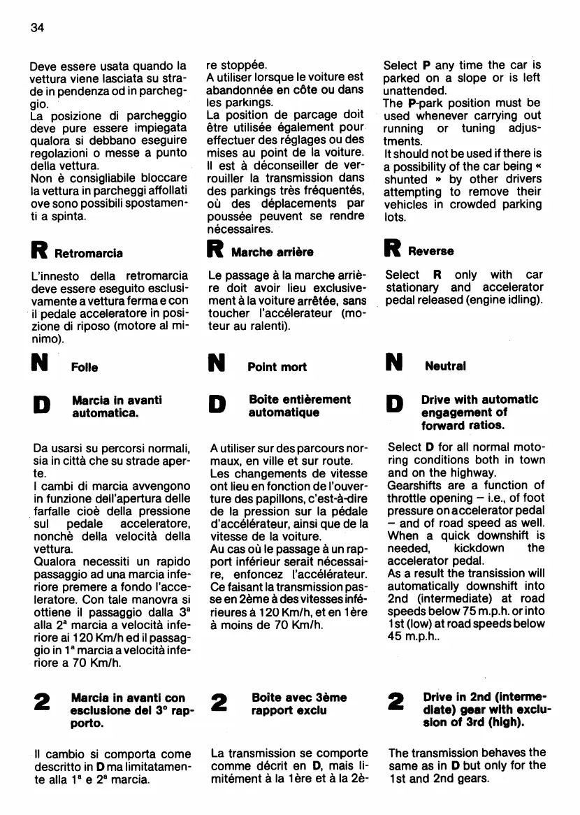 Ferrari 412 - Reverse; Neutral; Drive in 2 Nd Gear