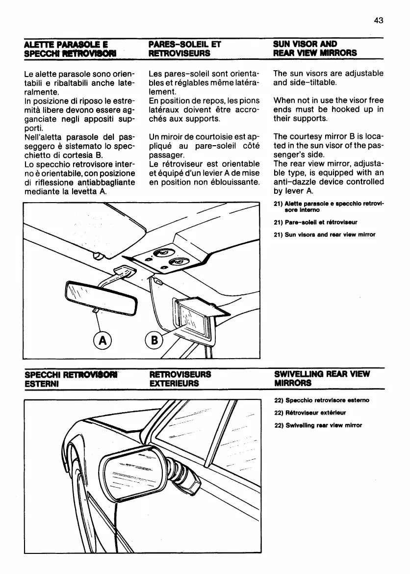 Ferrari 412 - Sun Visor and Rear View Mirrors; Swivelling Rear View Mirrors