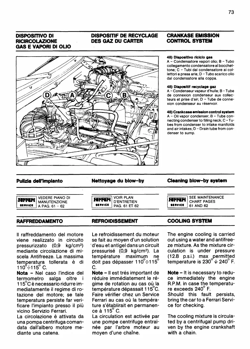 Ferrari 412 - Crankcase Emission Control System; Cleaning Blow-By System; Cooling System