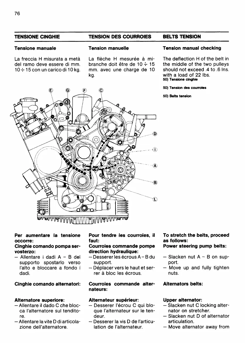 Ferrari 412 - Belts Tension; Tension Manual Checking; Alternators Belts; Upper Alternator