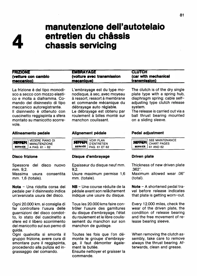 Ferrari 412 - Chassis Servicing; Pedal Adjustment; Driven Plate