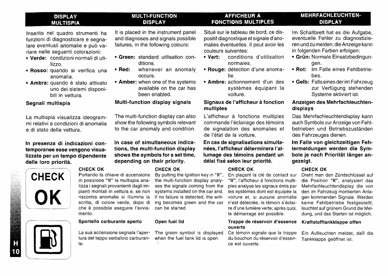 Ferrari 456M - Multi-Function Display; Multi-Function Display Signals; Check OK; Open Fuel Lid