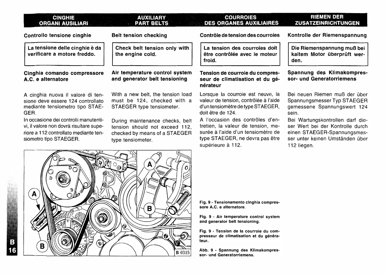 Ferrari 456M - Auxiliary Part Belts; Belt Tension Checking