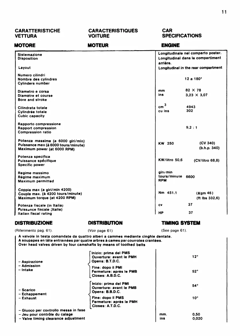 Ferrari 512 BB - Vehicle Specifications; Engine Specifications; Timing System Data