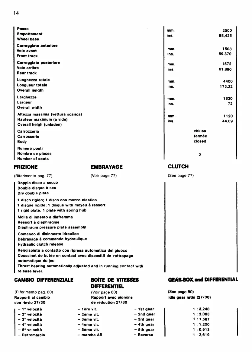 Ferrari 512 BB - Clutch System; Clutch Specifications; Gear-Box and Differential; Gear-Box Ratios