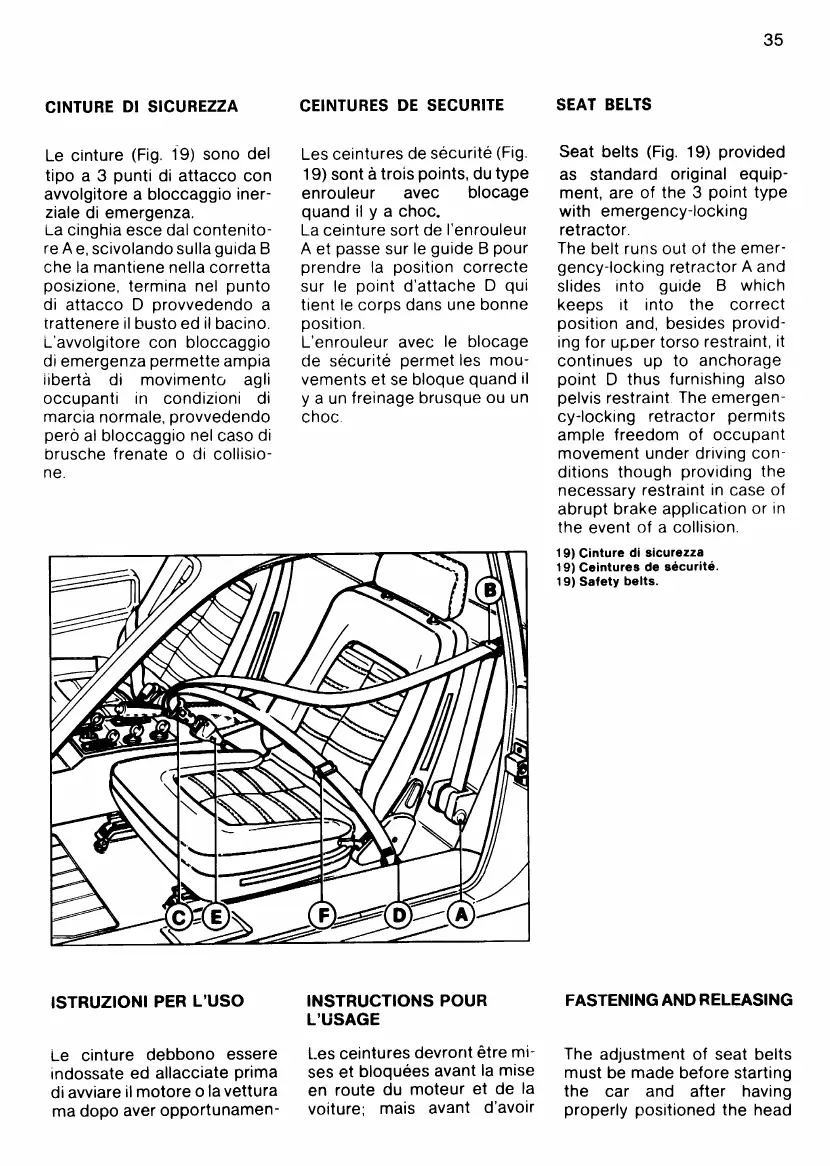 Ferrari 512 BB - Seat Belt Usage and Warnings