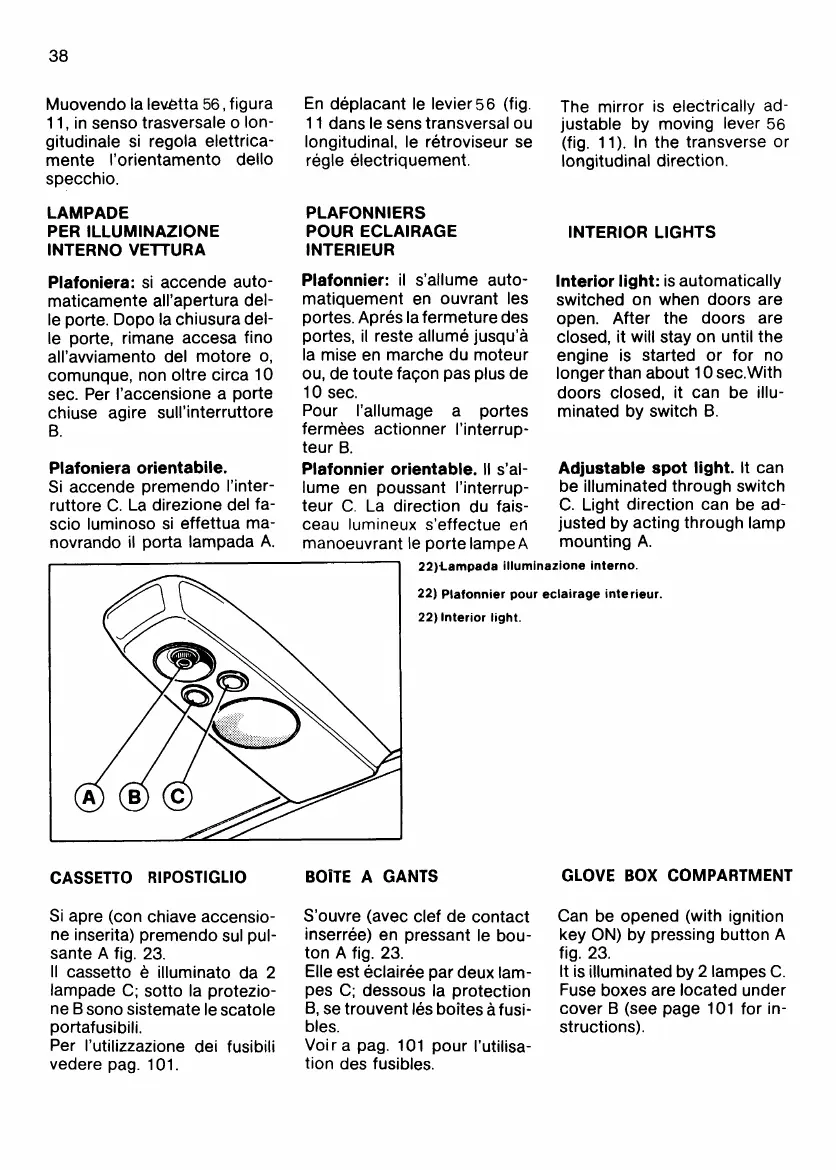 Ferrari 512 BB - Interior Light; Glove Box Compartment; Adjustable Spot Light