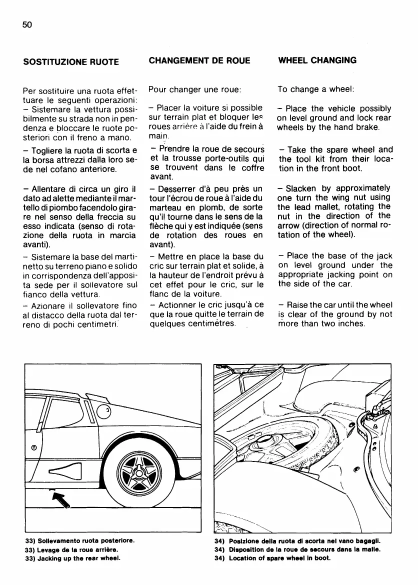 Ferrari 512 BB - Wheel Changing; Location of Spare Wheel in Boot