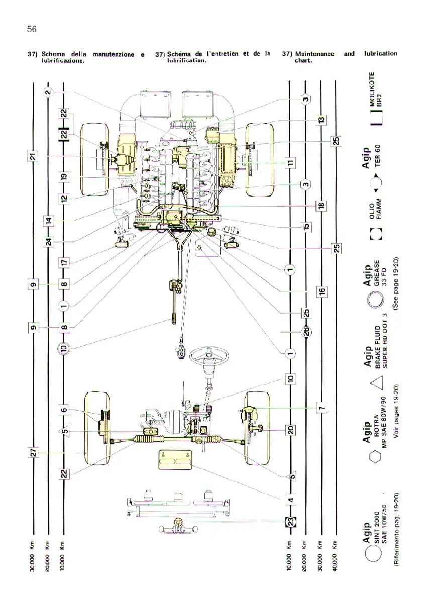 Ferrari 512 BB - Maintenance and Lubrication Chart