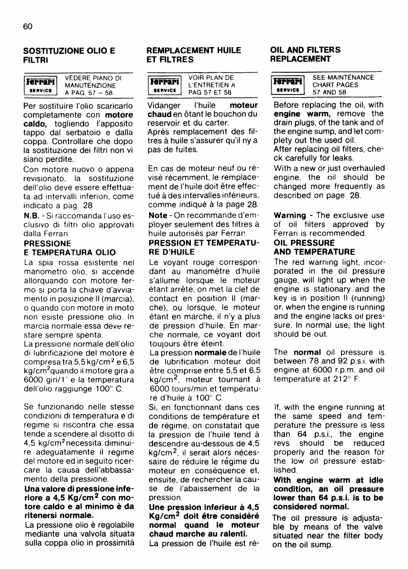 Ferrari 512 BB - Oil and Filters Replacement; Oil Pressure and Temperature