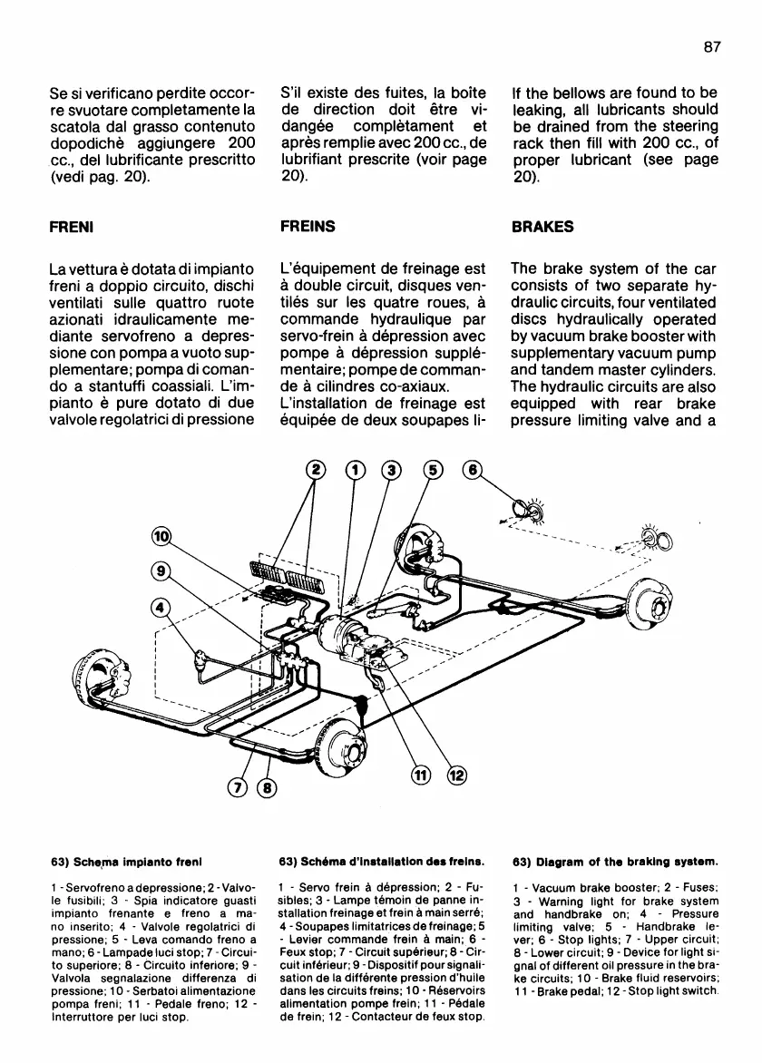 Ferrari 512 BB - Brakes Maintenance; Diagram of the Braking System