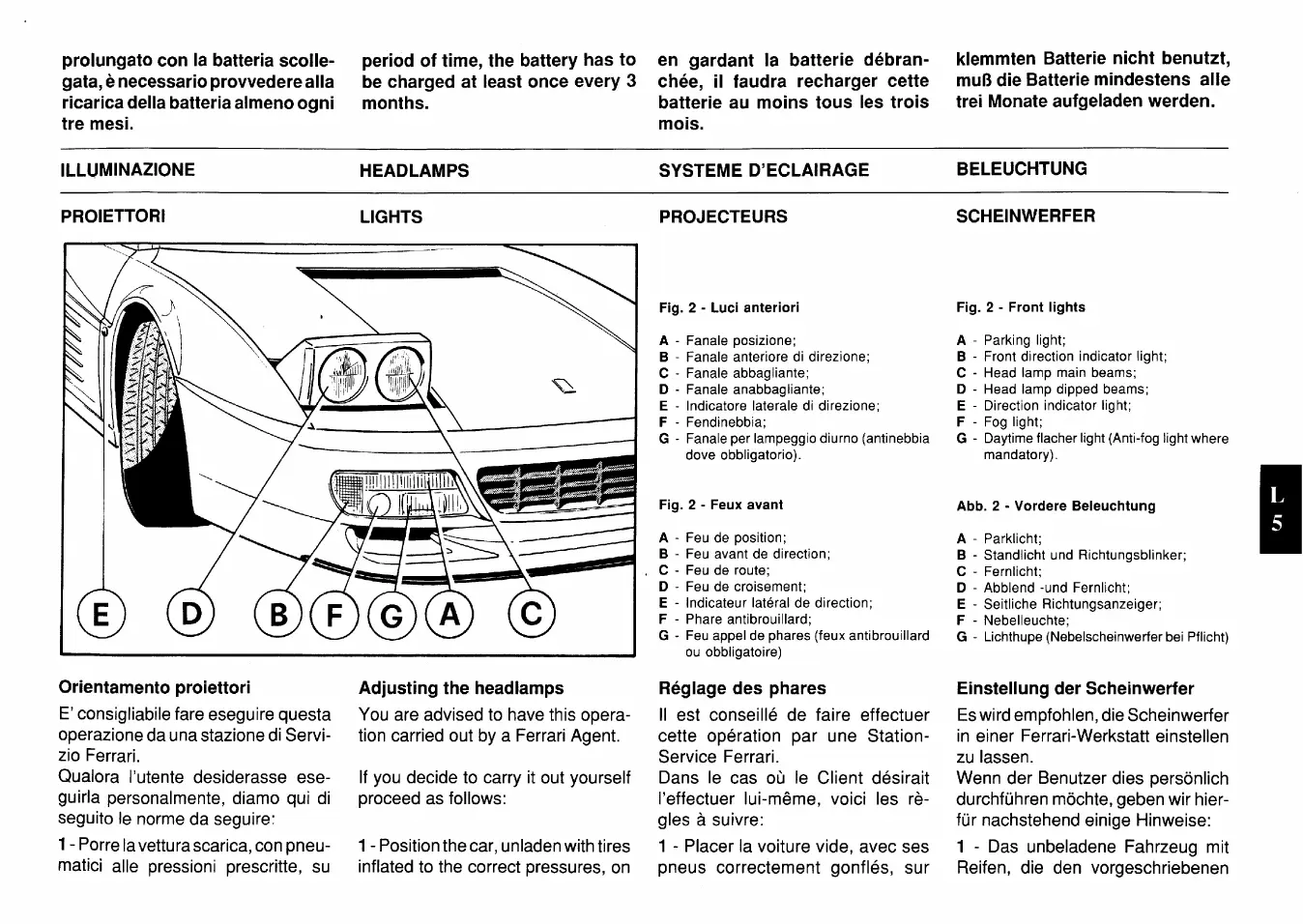 Ferrari 512 TR testarossa - illuminazione; proiettori; orientamento proiettori; headlamps