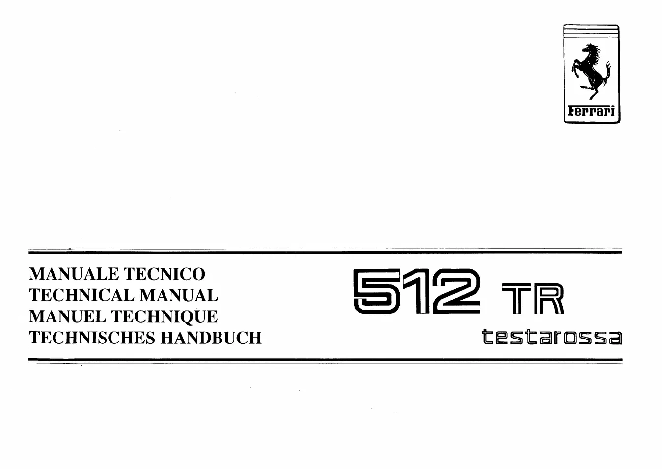 Ferrari 512 TR testarossa - manuale tecnico; technical manual; manuel technique; technisches handbuch