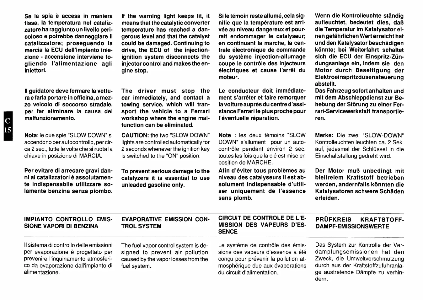 Ferrari 512 TR testarossa - impianto controllo emissione vapori di benzina; evaporative emission control system; circuit de contrôle de l’émission des vapeurs d’essence; prüfkreis kraftstoffdampf-emissionwerte