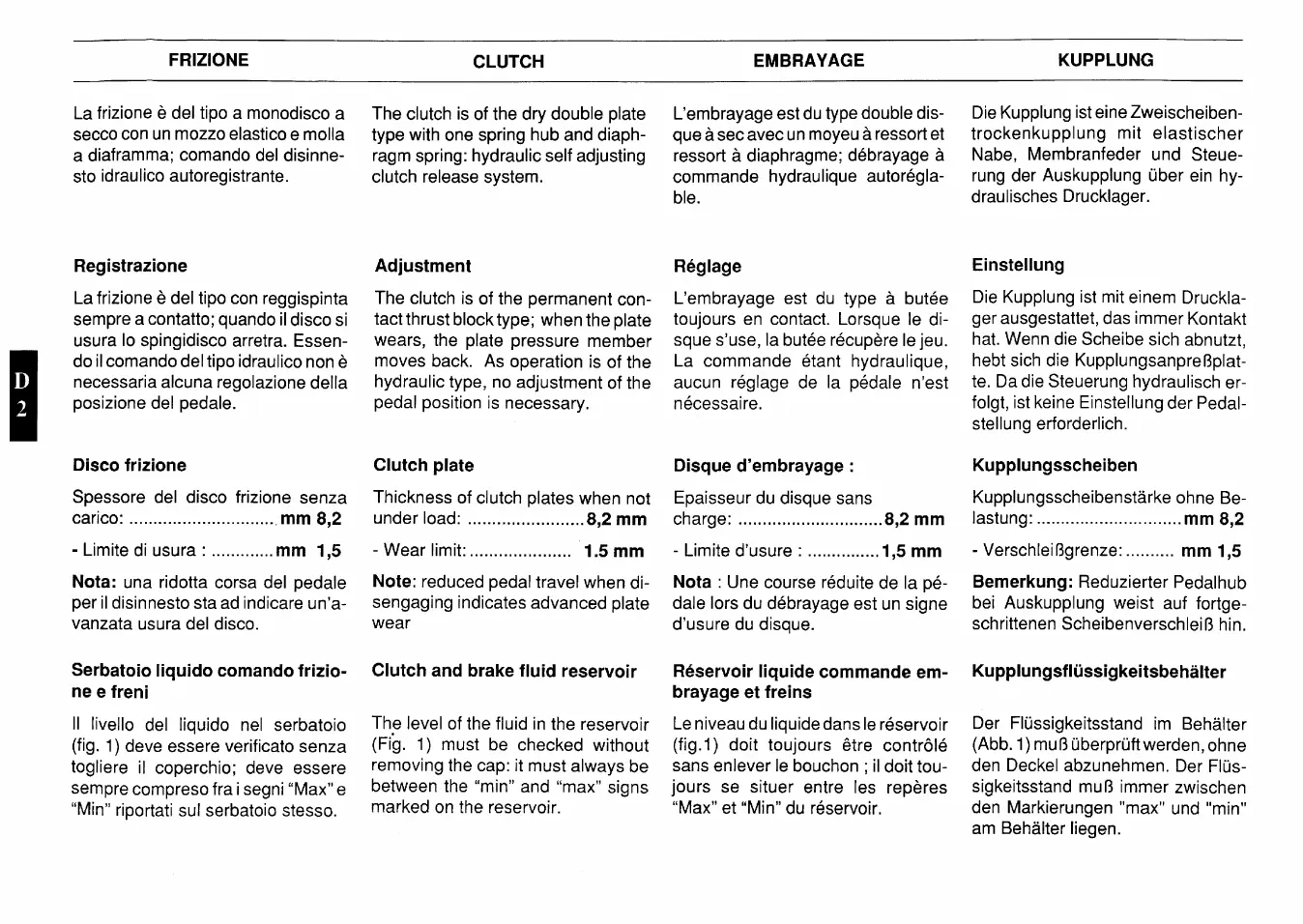 Ferrari 512 TR testarossa - frizione; registrazione; disco frizione; serbatoio liquido comando frizione e freni