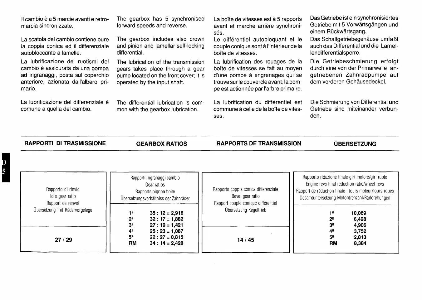 Ferrari 512 TR testarossa - rapporti di trasmissione; gearbox ratios; rapports de transmission; übersetzungen