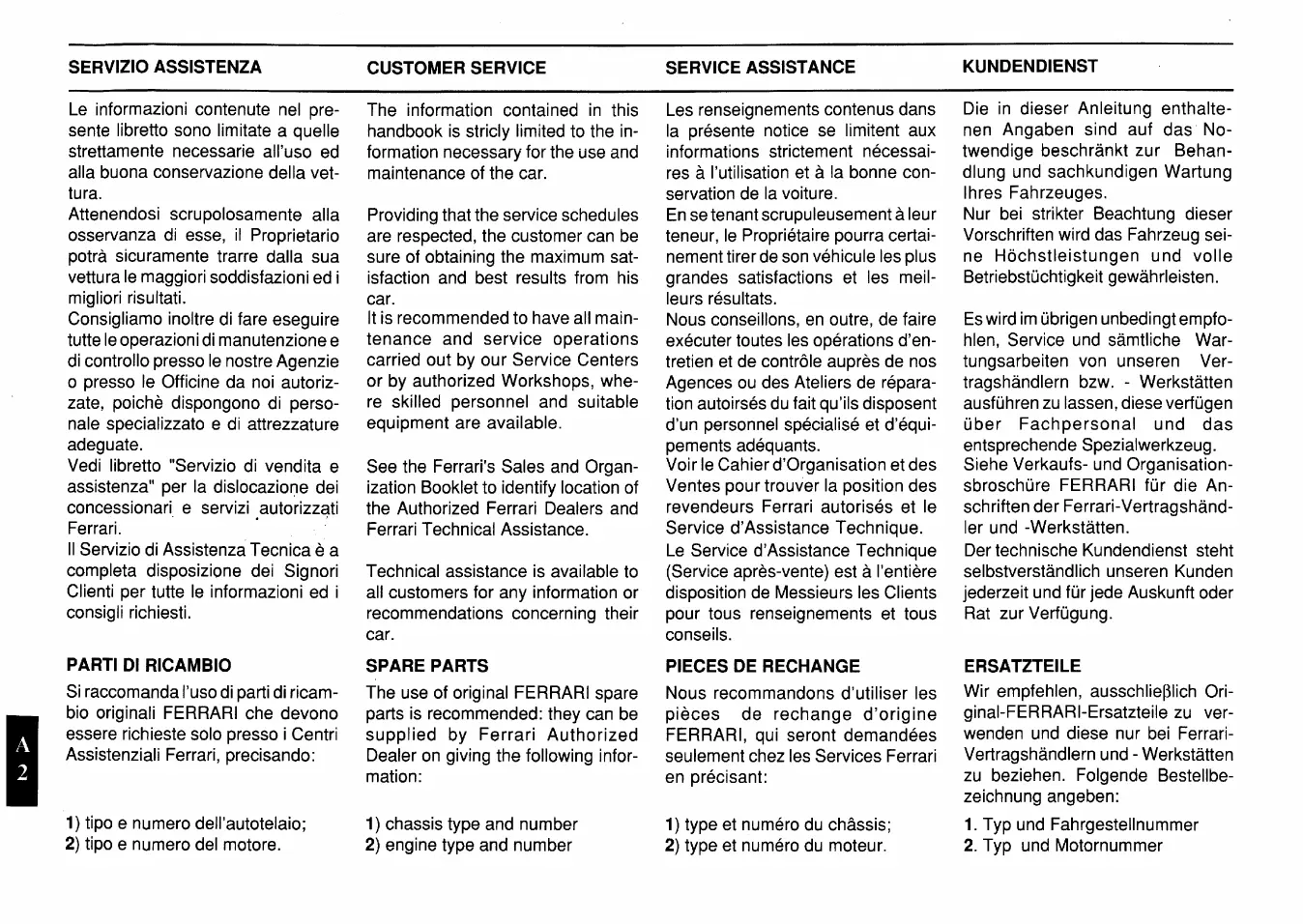 Ferrari 512 TR testarossa - servizio assistenza; customer service; service assistance; kundendienst