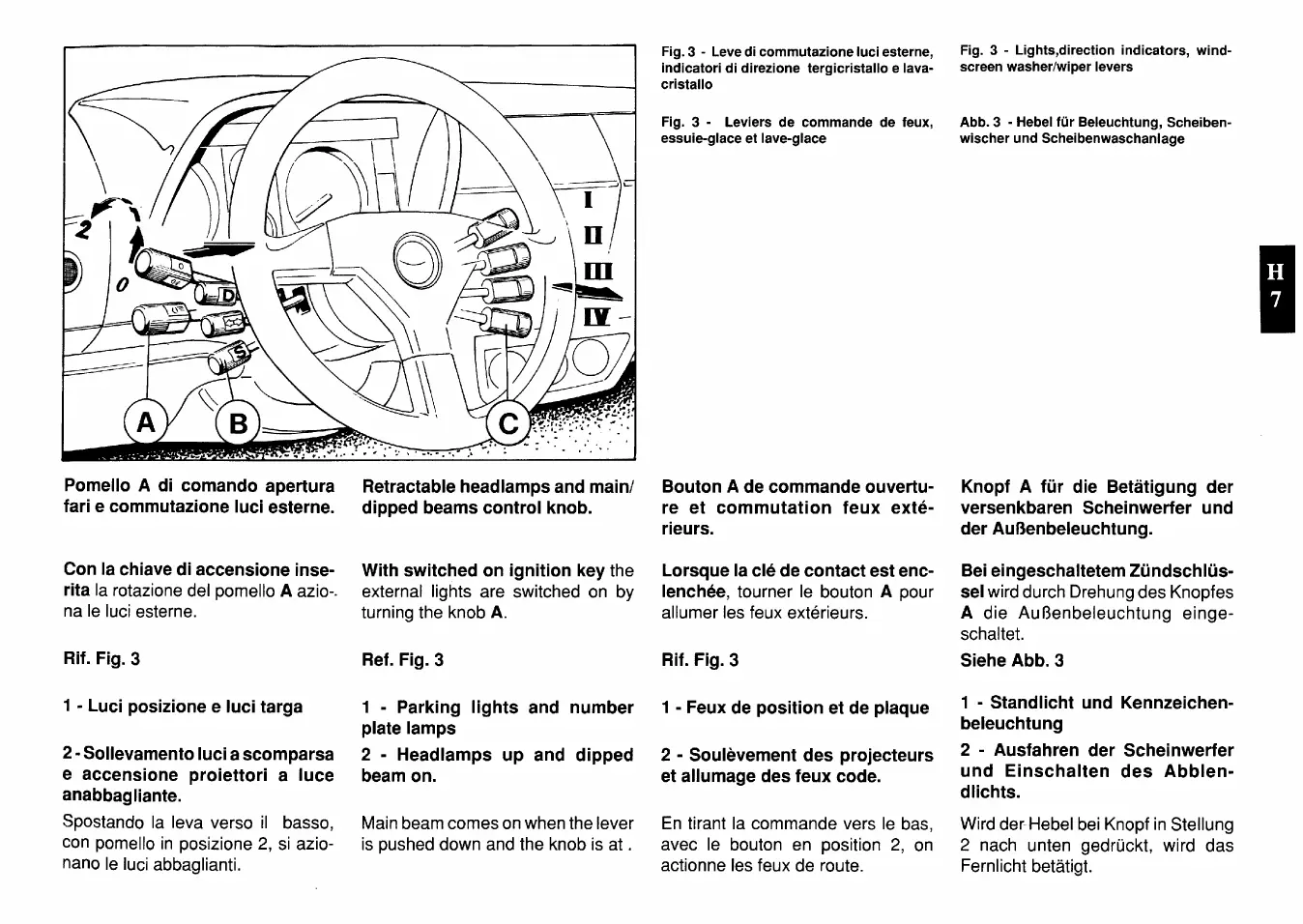 Ferrari 512 TR testarossa - leve di commutazione luci esterne, tergicristallo, lavacristallo; windscreen washer, wiper and exterior lighting switch levers; levier de commande feux, essuie-glaces, lave-glaces; hebel für beleuchtung, scheibenwischer und scheibenwaschanlage