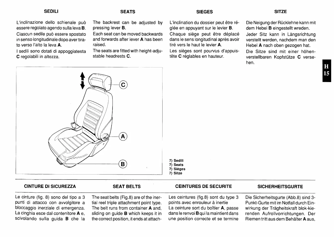 Ferrari 512 TR testarossa - sedili; cinture di sicurezza; seats; seat belts