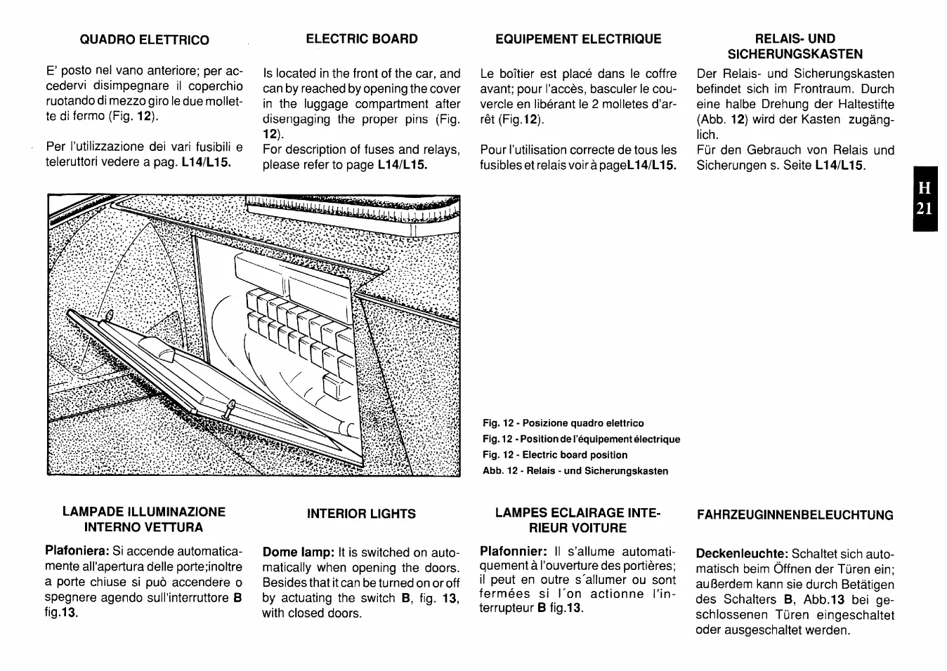Ferrari 512 TR testarossa - quadro elettrico; lampade illuminazione interno vettura; electric board; interior lights