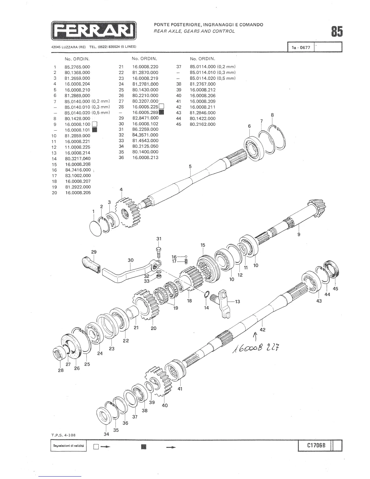 Ferrari 85 - Rear Axle, Gears and Controls