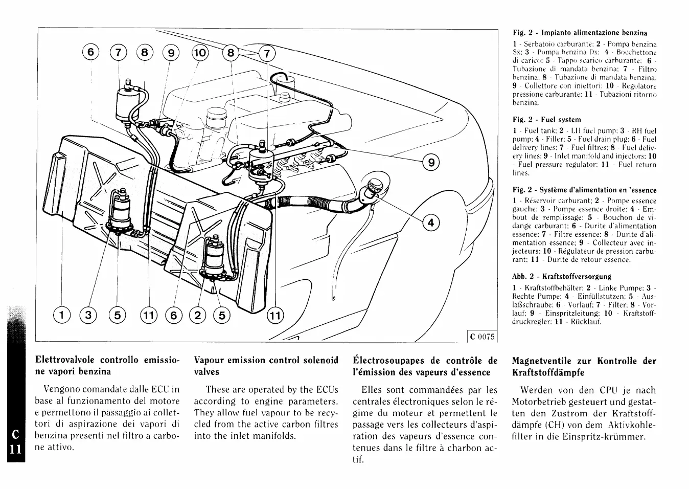 Ferrari F355 berlinetta - Braking System; Circuits Controlled by the Ignition Key