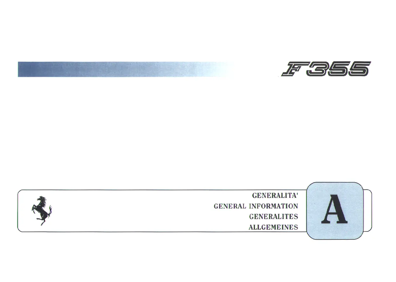 Ferrari F355 berlinetta - A) GENERALITA; A) GENERAL INFORMATION; A) GENERALITES; A) ALLGEMEINES