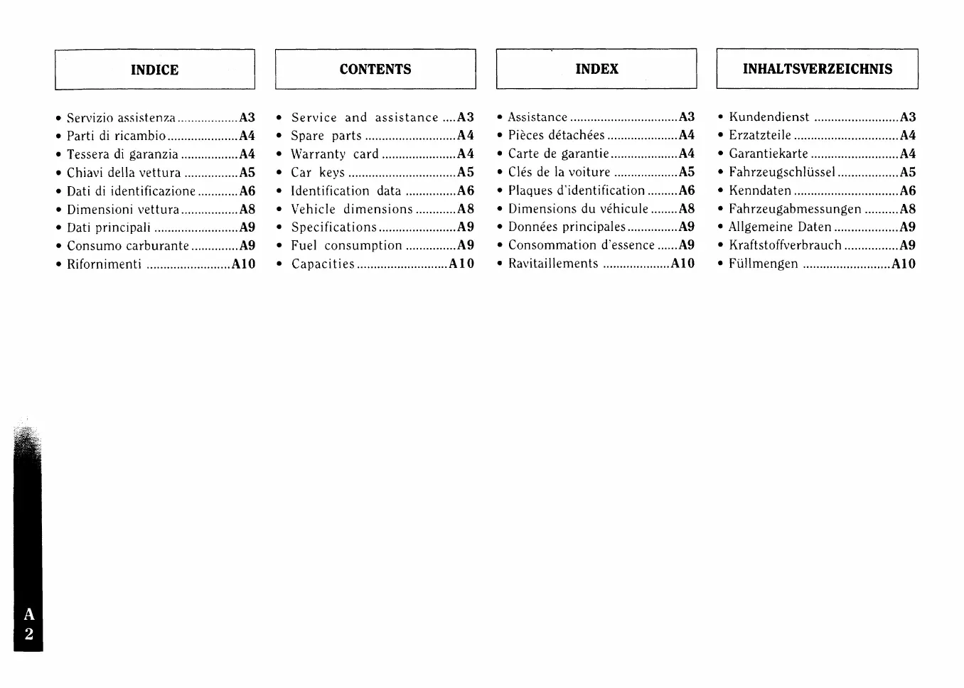 Ferrari F355 berlinetta - INDICE; CONTENTS; INDEX; INHALTSVERZEICHNIS