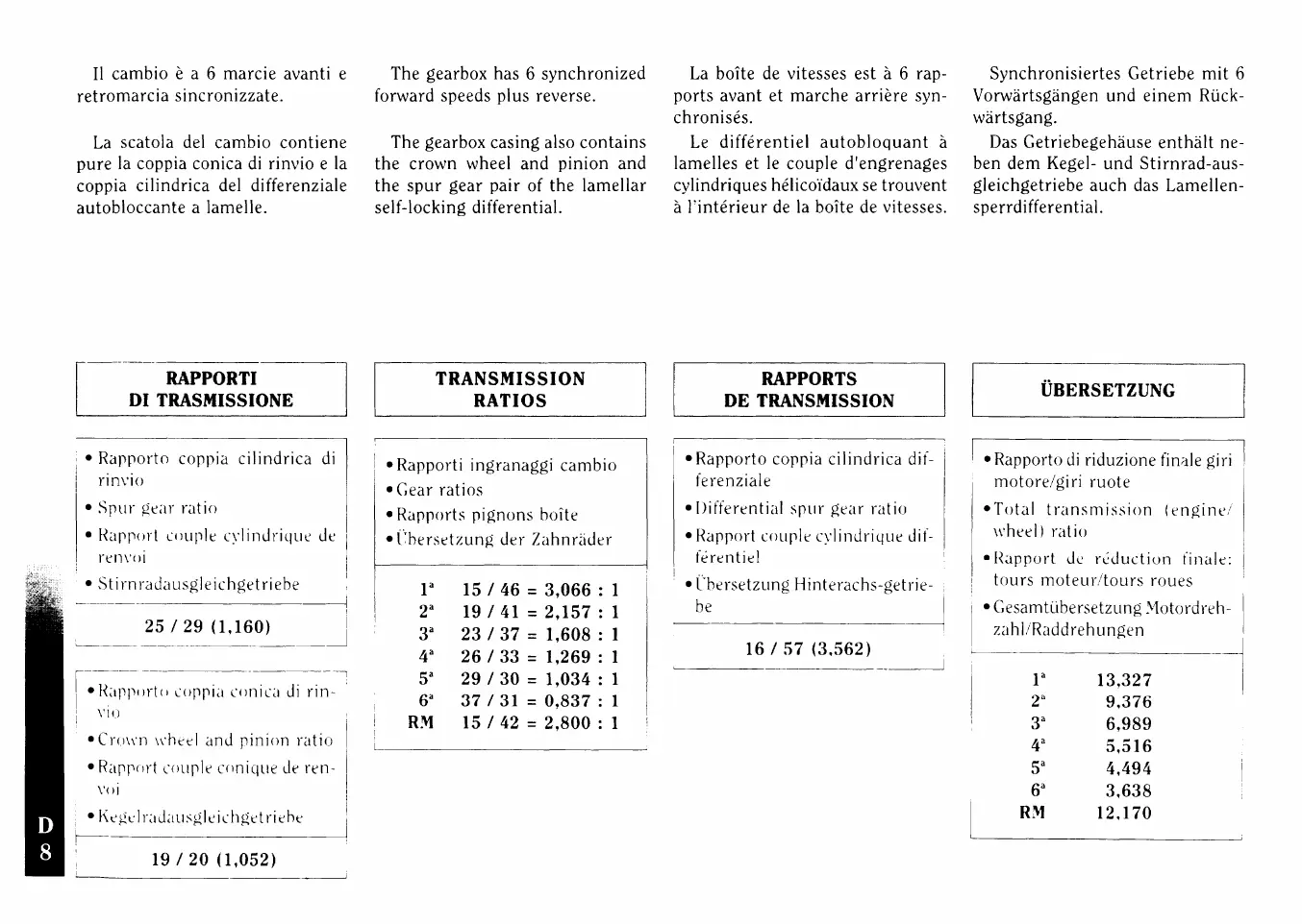 Ferrari F355 berlinetta - rapporti di trasmissione; transmission ratios; rapports de transmission; übersetzungen