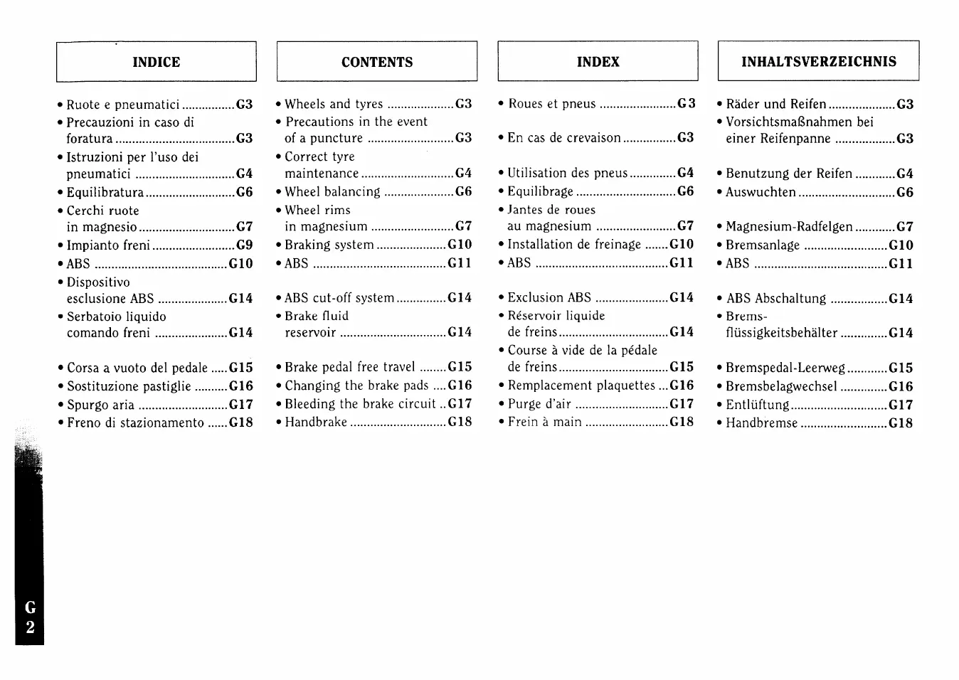 Ferrari F355 berlinetta - INDICE; CONTENTS; INDEX; INHALTSVERZEICHNIS
