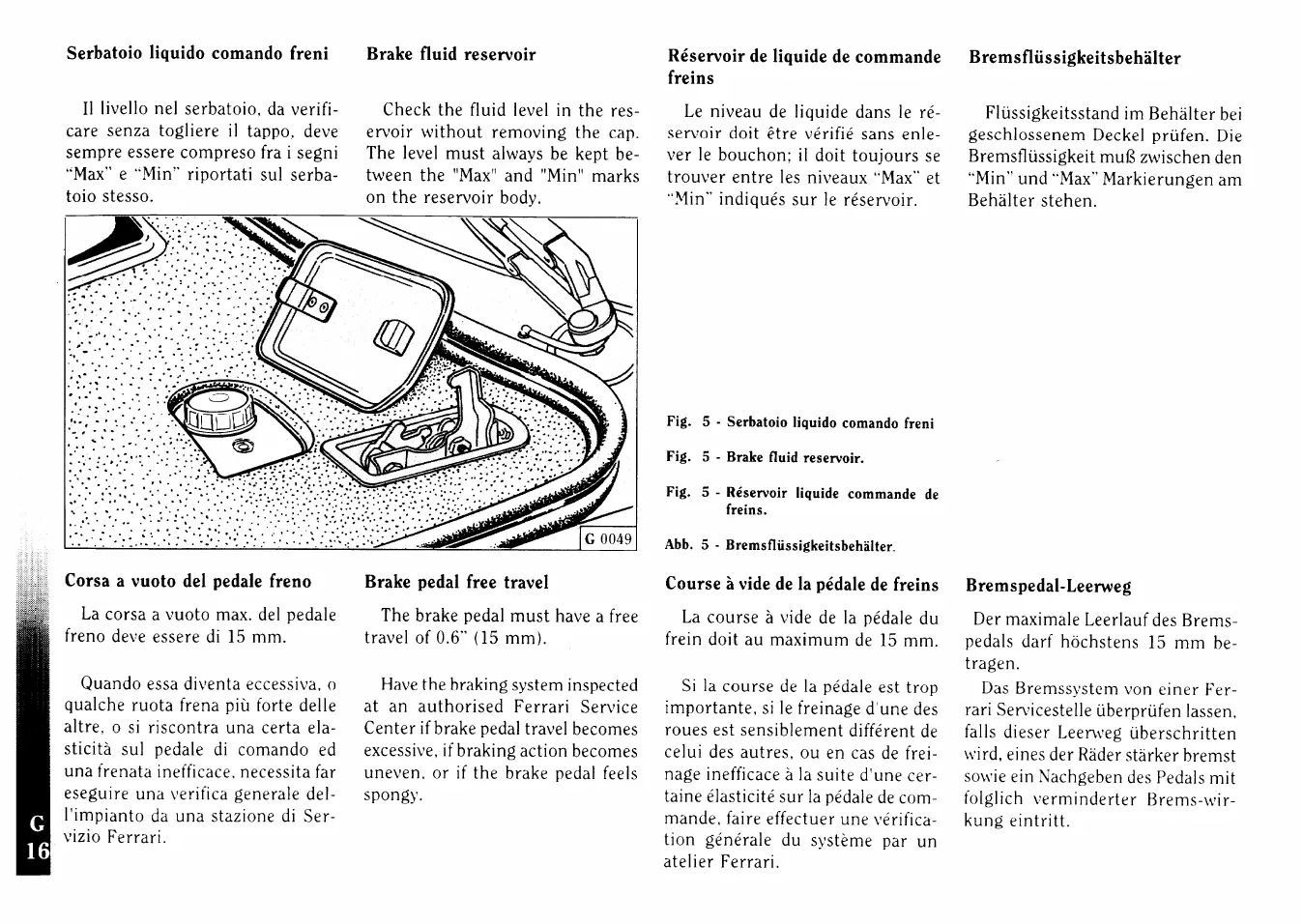 Ferrari F355 - Brake Fluid Reservoir; Brake Pedal Free Travel