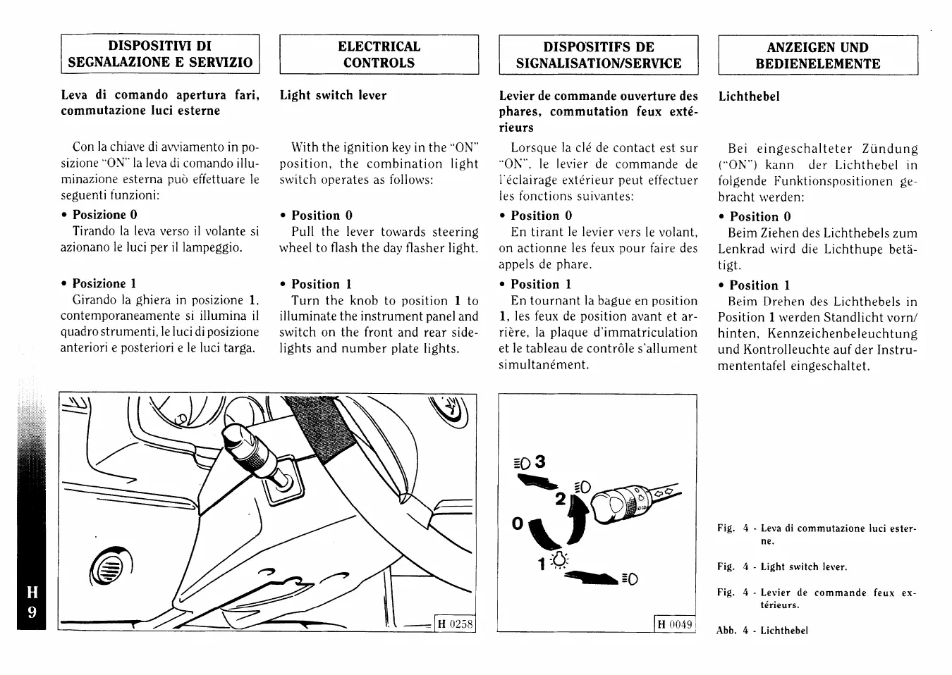 Ferrari F355 - Electrical Controls; Light Switch Lever