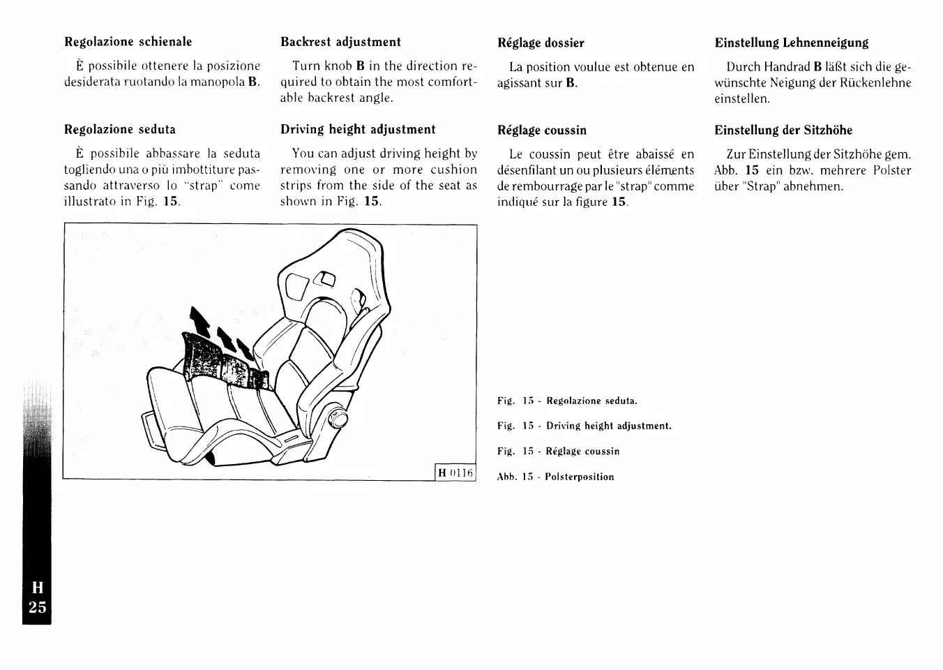 Ferrari F355 - Backrest Adjustment; Driving Height Adjustment