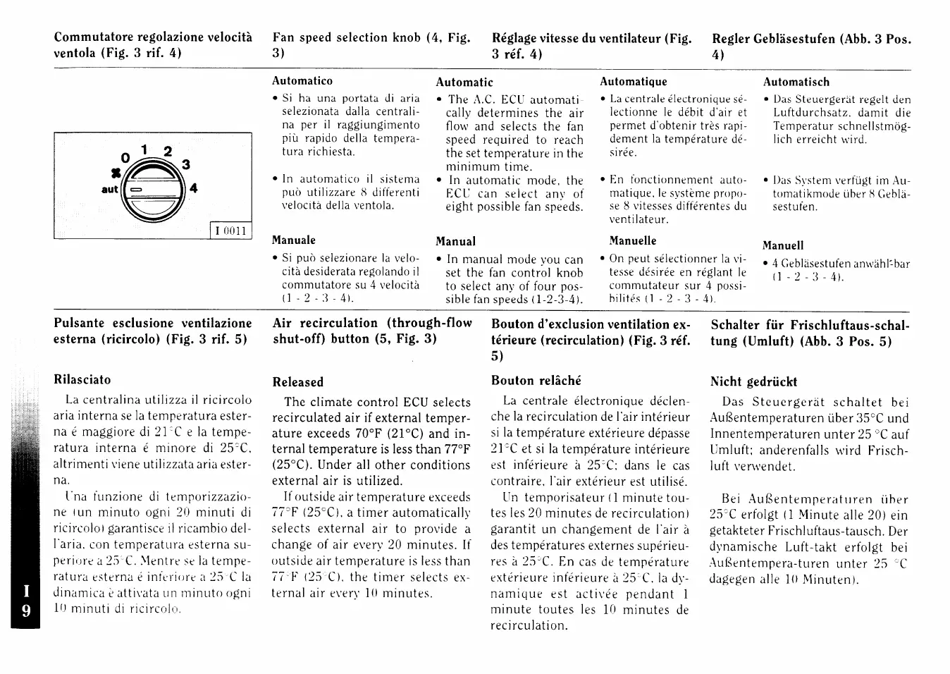 Ferrari F355 - Fan Speed Selection Knob; Air Recirculation