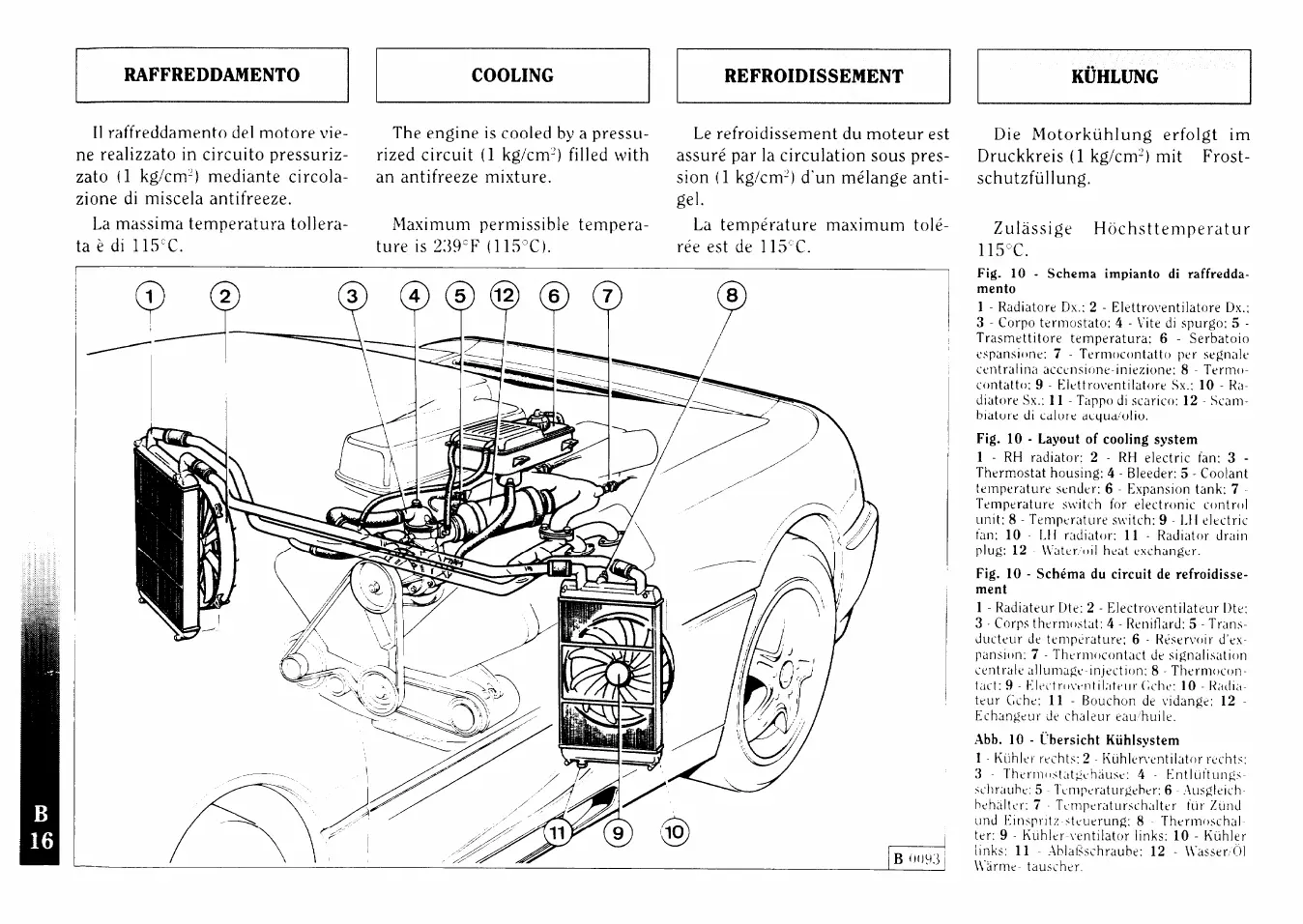 Ferrari F355 - Cooling; Layout of Cooling System
