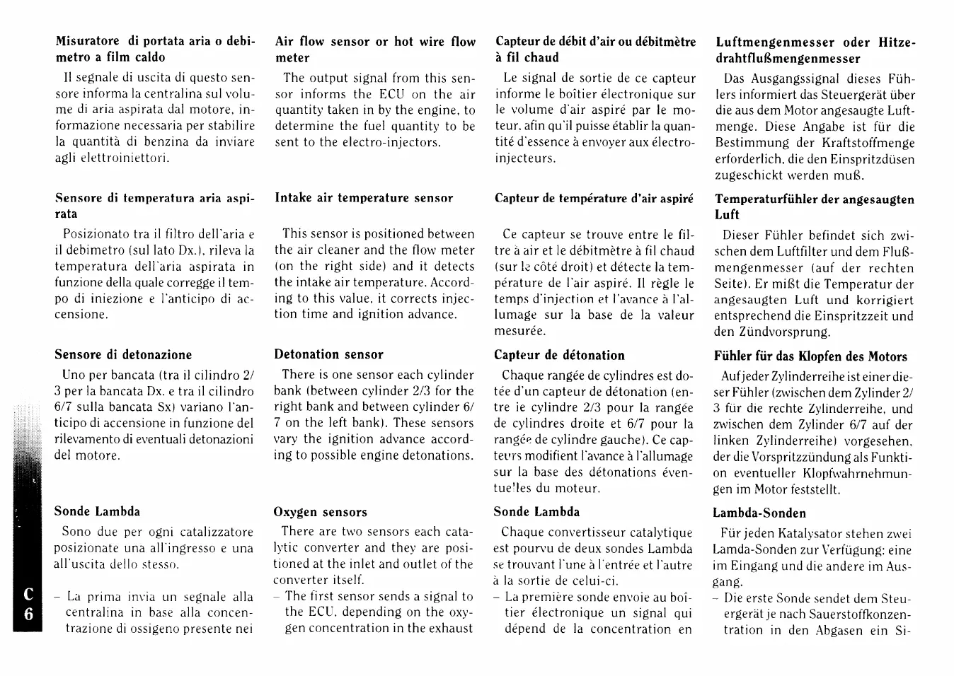 Ferrari F355 - Air Flow Sensor or Hot Wire Flow Meter; Intake Air Temperature Sensor; Detonation Sensor; Oxygen Sensor